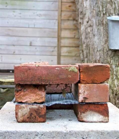 – You can place an additional brick horizontally across the top to create a surface for pots or pans. Ensure it’s stable and balanced. Alternatively, you can place a metal grill or grate on top of the vertical bricks to hold your cooking vessel.