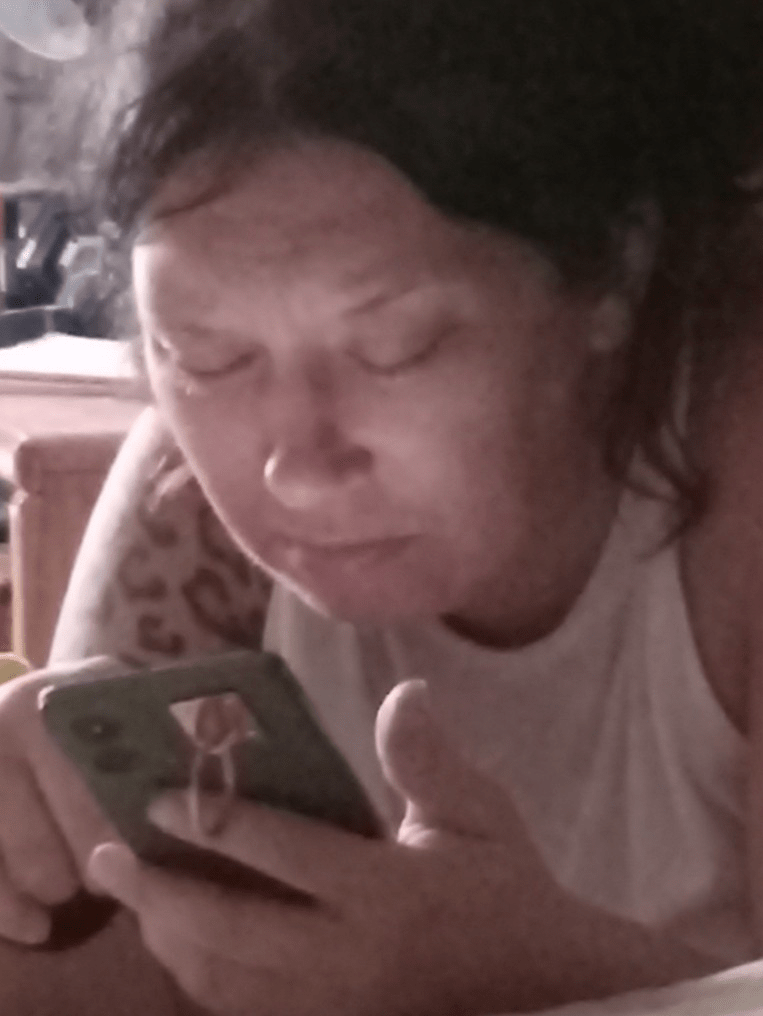 The photo shows a woman nodding off while trying to use her phone. Her face, caught in that split-second of struggle, says more than data ever will.