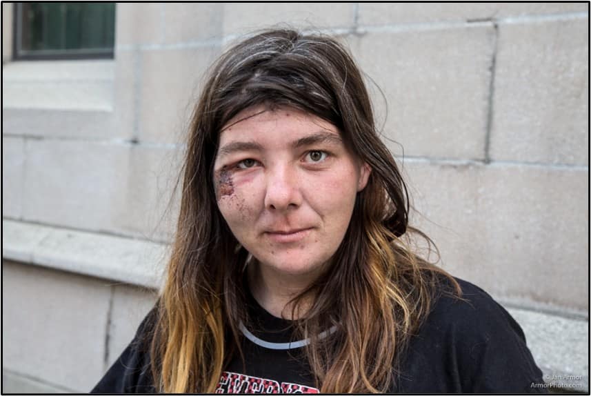 Because of the long-term in the streets on her own, she became impaired, and due to the trauma she suffered at the hands of many, she is now permanently dealing with emotional issues that have her talking to invisible people.